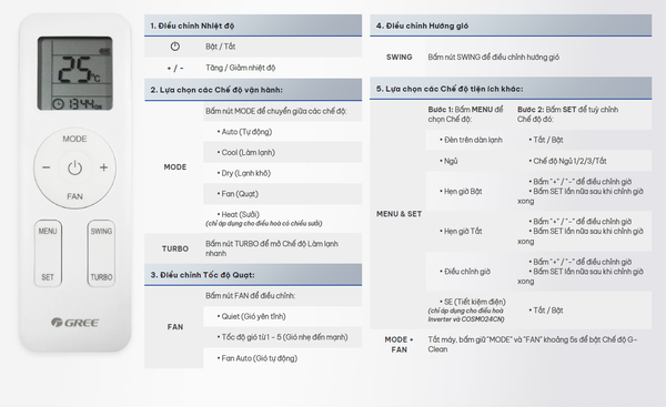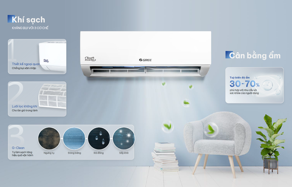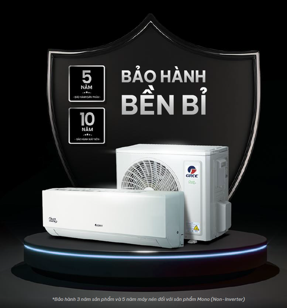 Công nghệ GREE Inverter cải tiến, máy nén điều chỉnh hoạt động phù hợp vừa làm mát không gian, vừa tiết kiệm điện năng, điều chỉnh nhiệt độ chính xác.