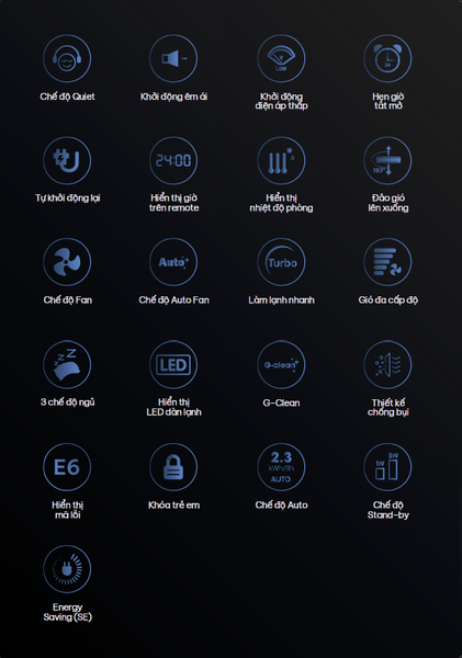 Cân bằng độ ẩm trong mức phù hợp bảo vệ sức khỏe người dùng, Chức năng tự làm sạch dàn lạnh 5 bước : NGƯNG TỤ - ĐÓNG BĂNG - RÃ ĐÔNG - SẤY KHÔ loại bỏ hoàn toàn bụi bẩn, vi khuẩn tích tụ trên dàn, giảm thiểu tối đa những tác nhân có hại trong phòng. Kết hợp với bộ lọc không khí với những lỗ siêu nhỏ li ti, mang lại luồng gió mát lạnh, sạch khuẩn, trong lành.