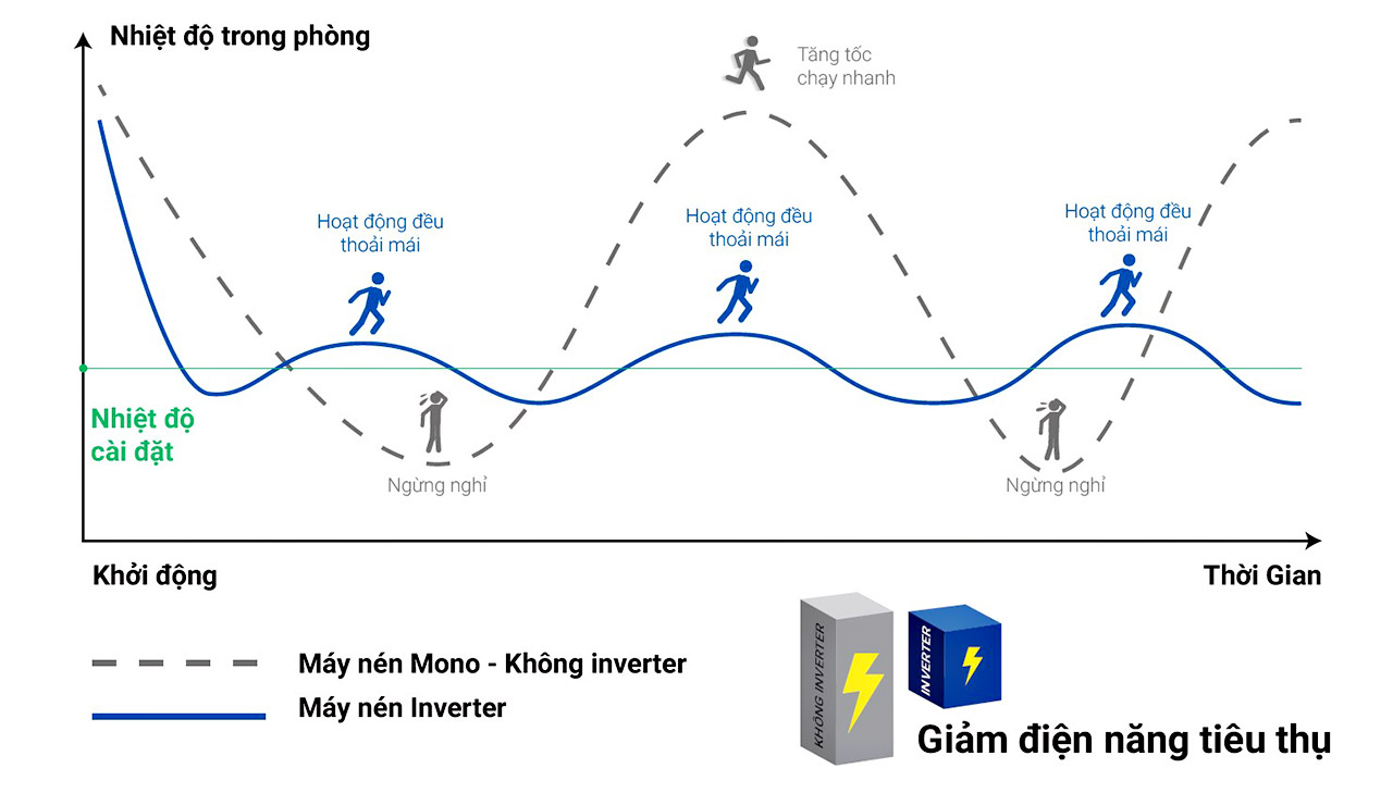 Hẹn giờ bật tắt máy: người dùng không cần tỉnh giấc nửa đêm để điều chỉnh lại mức nhiệt độ, tránh tình trạng giấc ngủ của bạn bị gián đoạn.