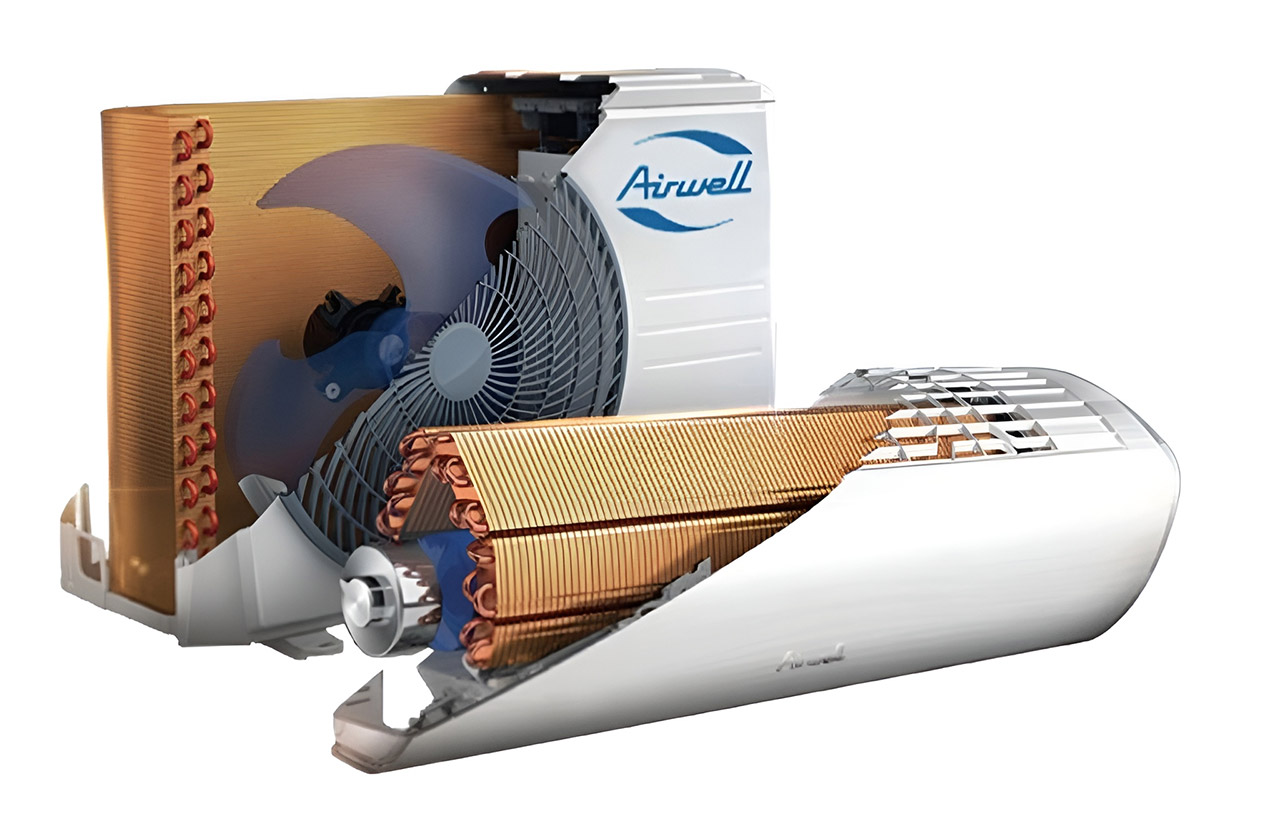 Dàn trao đổi nhiệt của máy lạnh Airwell inverter AW-24ID-1 sử dụng 100% ống đồng với lớp phủ mạ vàng độc đáo có khả năng: