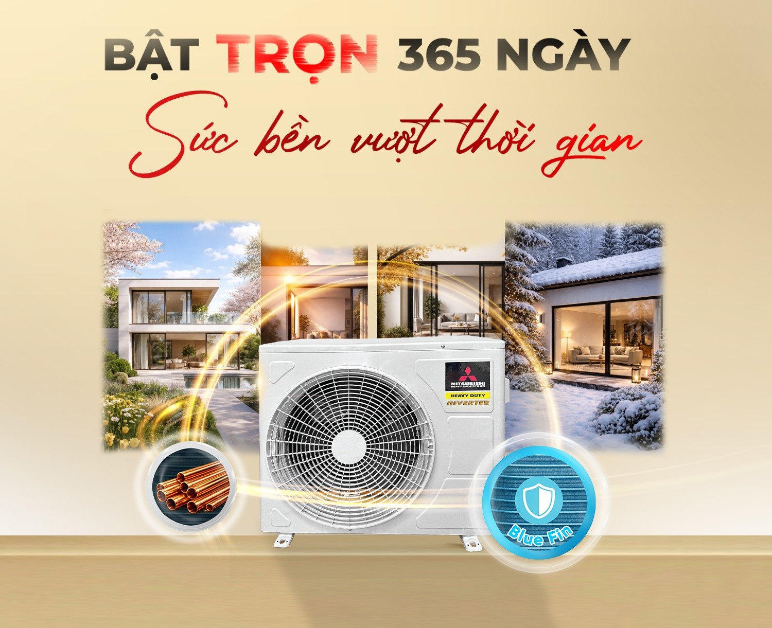 Ống dẫn môi chất hoàn toàn bằng đồng giúp tăng hiệu quả trao đổi nhiệt và nâng cao tuổi thọ thiết bị. Đặc biệt, thiết kế dàn kép hai lớp ống đồng (Double Heat Exchanger) được trang bị trên các dòng Mitsubishi Heavy Non-Inverter từ 24.000 BTU và Mitsubishi Heavy Inverter từ 12.000 BTU trở lên, đảm bảo khả năng vận hành bền bỉ ngay cả khi máy hoạt động liên tục.