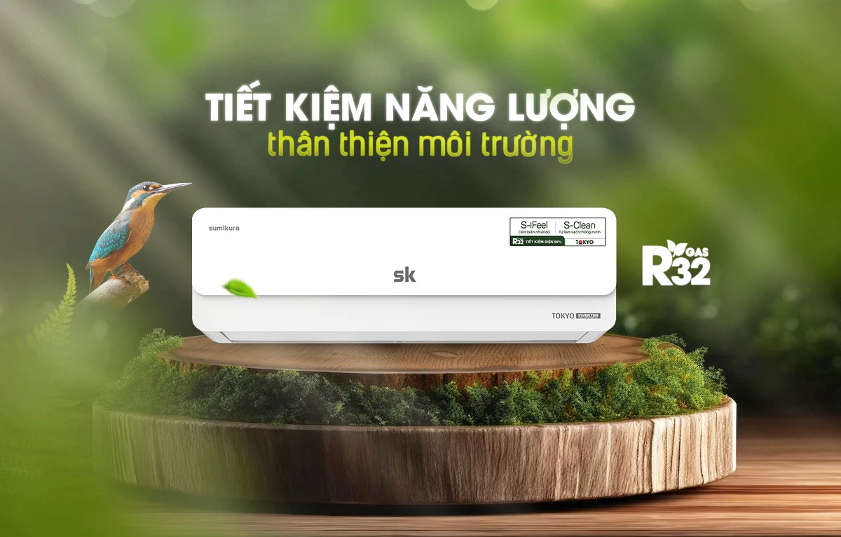 Series Tokyo điều hòa nhiệt độ bằng thế hệ gas mới nhất R32, dòng gas được mệnh danh là dung môi máy lạnh “xanh” vì những ưu điểm: