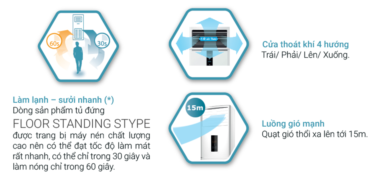 Máy nén chất lượng cao nên có thể đạt tốc độ làm mát rất nhanh trong khoảng 30s.Máy lạnh tủ đứng Casper đã thay đổi định nghĩa về máy lạnh, nó là vật trang trí và góp phần tôn thêm đẳng cấp riêng biệt của người sử dụng