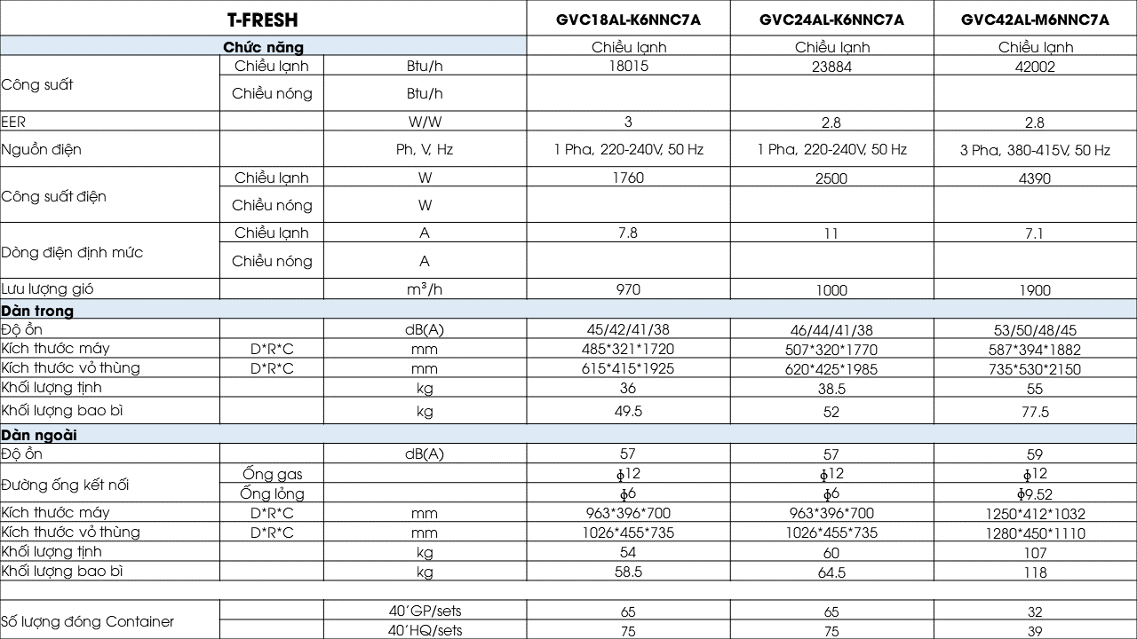 THÔNG SỐ KỸ THUẬT MÁY LẠNH TỦ ĐỨNG NON INVERTER GREE GVC42AL-M6NNC7A (5.0HP)