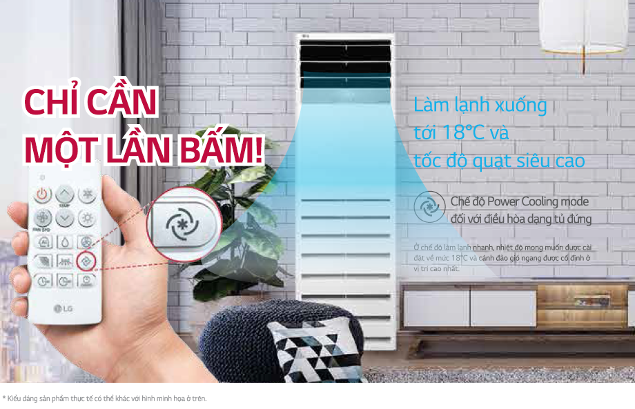 • - Máy lạnh tủ đứng LG hoạt động rất hiệu quả ở những khu vực rộng lớn nhờ công suất làm lạnh mạnh mẽ. Tốc độ và lưu lượng gió thổi mạnh mẽ, luồng gió có thể được thổi ra xa khỏi máy lạnh tới 20m