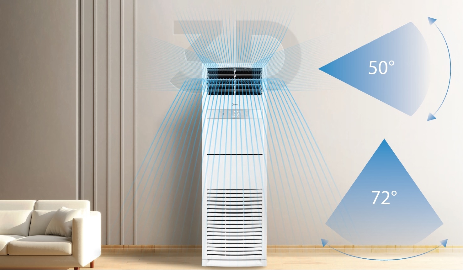 Góc đảo gió ngang dọc rộng, phạm vi làm lạnh lớn.