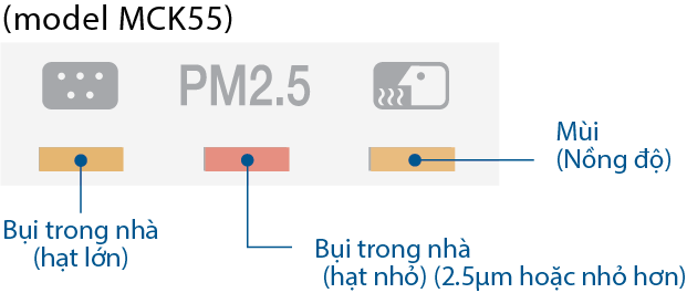 * Phương pháp kiểm nghiệm: Tiêu chuẩn hiệp hội các nhà sản xuất điện Nhật bản, JEM1467 Tiêu chí: loại bỏ 99% các hạt bụi có kích thước từ 0.1 đến 2.5 µm trong không gian kín 32m³ trong 90 phút (Được chuyển đổi thành một giá trị trong không gian thử nghiệm 32m3)