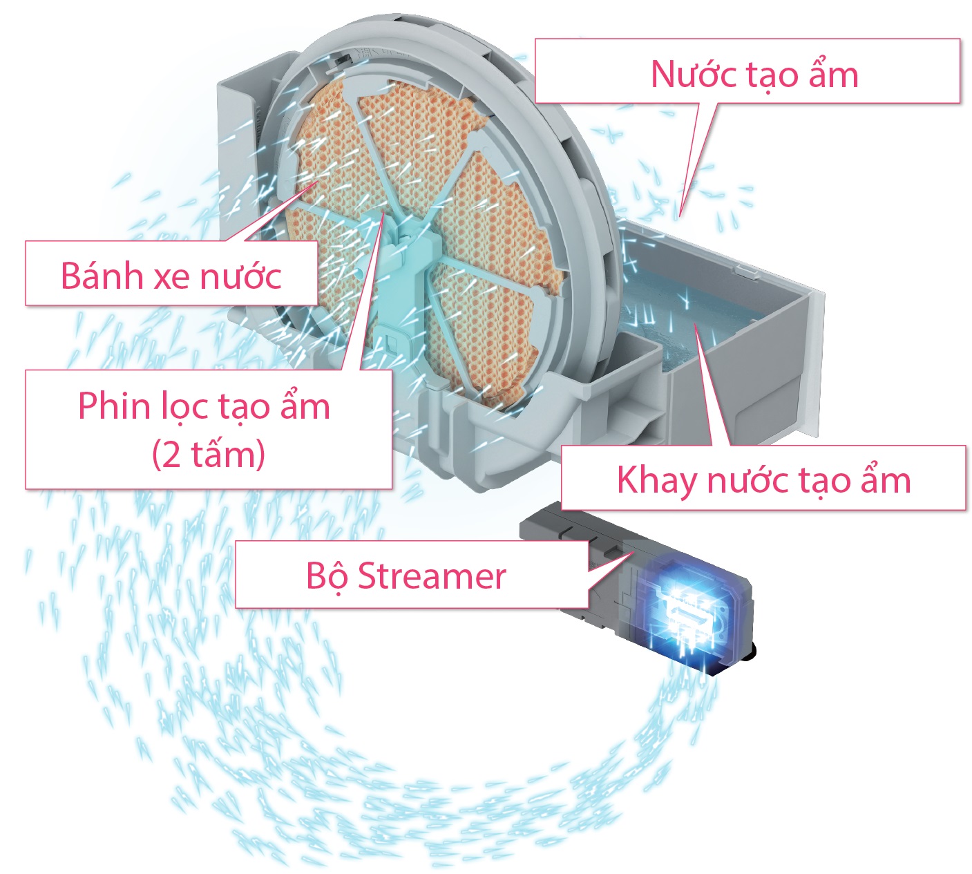 Công nghệ Streamer là một điểm độc đáo trong phương pháp tạo ẩm của Daikin, có thể ức chế vi khuẩn trên phin lọc tạo ẩm và nước dùng để tạo ẩm.