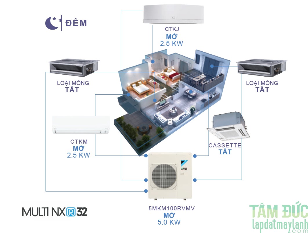 Điều hòa multi hoạt động trong trạng thái yên tĩnh.
