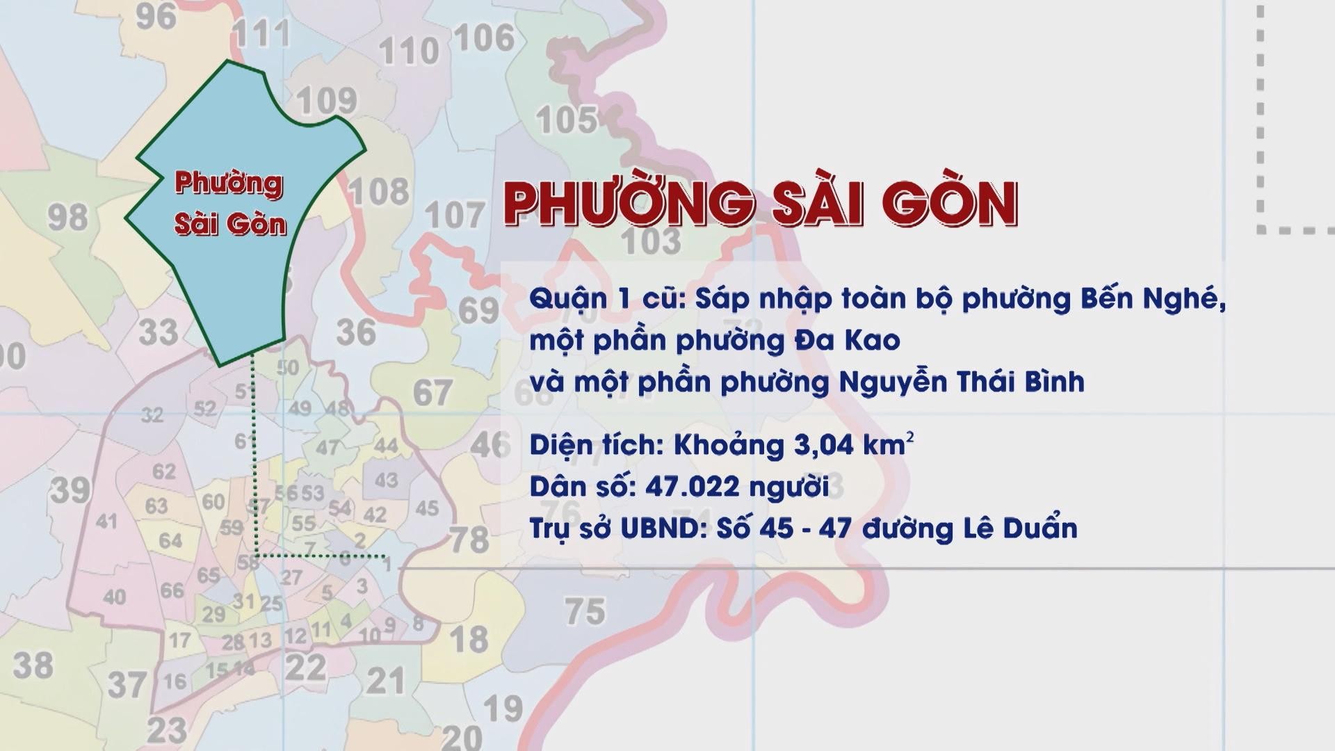 - Phường Sài Gòn là phường mới được sát nhập vào năm 2025, nằm ở khu vực trung tâm Quận 1 cũ, bao gồm phường Bến Nghé cũ và một phần phường Đa Kao, Nguyễn Thái Bình.
