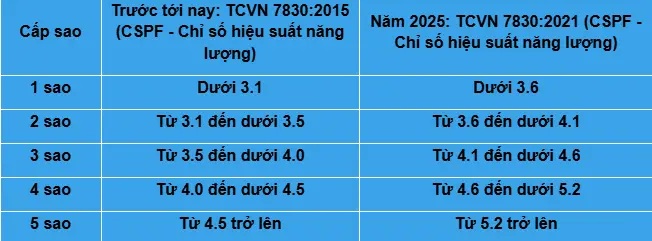 Hiện nay trên thị trường, hầu hết các mẫu máy lạnh đều được dán nhãn năng lượng 5 sao, khiến người tiêu dùng khó phân biệt mức độ tiết kiệm năng lượng thực sự của từng sản phẩm. Nguyên nhân chính là do tiêu chuẩn TCVN 7830:2015, được áp dụng trong nhiều năm, yêu cầu chỉ số hiệu suất năng lượng CSPF (Cooling Seasonal Performance Factor) trên 4,2 để đạt 5 sao. Với sự phát triển của công nghệ, nhiều mẫu máy lạnh, đặc biệt là các dòng sử dụng công nghệ Inverter, dễ dàng đạt hoặc vượt mức này.
