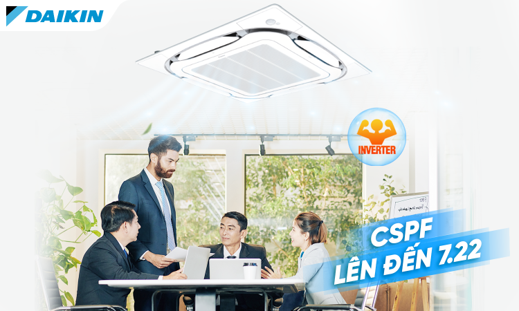 Với các model cassette Inverter của Daikin, chỉ số CSPF (hệ số hiệu quả lạnh toàn mùa) lên đến 7.22, cao hơn nhiều sản phẩm điều hòa đang bán trên thị trường. Giá trị CSPF càng cao biểu thị hiệu suất năng lượng càng lớn, tiết kiệm điện năng càng nhiều, chi phí tiền điện càng thấp, từ đó tiết kiệm chi phí cho người dùng.