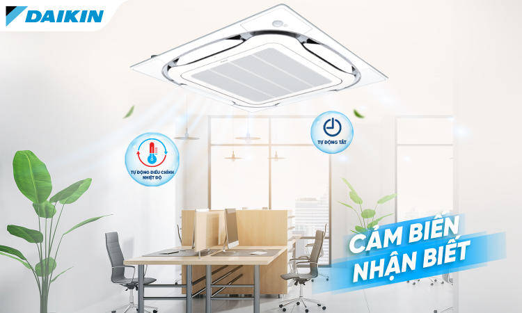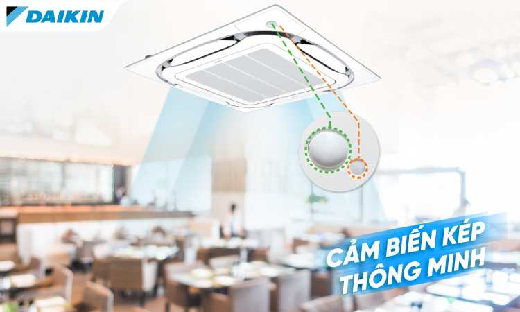 Bên cạnh đó, dòng điều hòa SkyAir Inverter có công nghệ cảm biến hồng ngoại kép: cảm biến hiện diện người và nhiệt độ trung bình của sàn nhà bằng tia hồng ngoại. Để tự động điều chỉnh hoạt động của dàn lạnh, tránh tình trạng bật điều hòa quá lạnh gây ra hao tốn năng lượng và gây khó chịu cho người dùng.