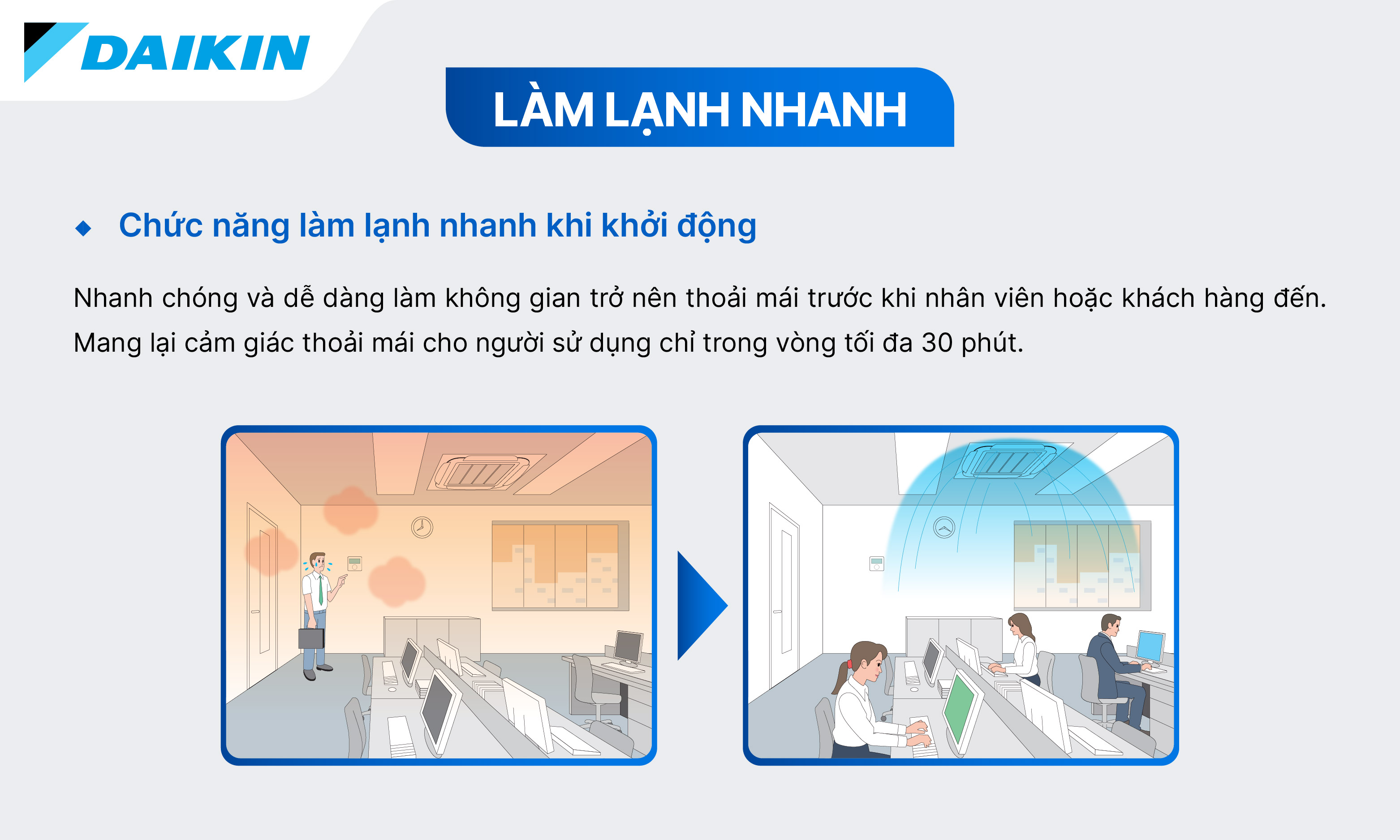 Điều hòa Inverter còn đem lại sự thoải mái nhanh chóng cho người dùng khi kiểm soát lưu lượng gió tối ưu và đạt đến nhiệt độ cài đặt nhanh hơn các dòng không sử dụng công nghệ Inverter. Nhờ đó, không cần bật điều hòa quá lâu để đạt được nhiệt độ mong muốn và mang lại cảm giác thoải mái cho người dùng chỉ trong vòng 30 phút.